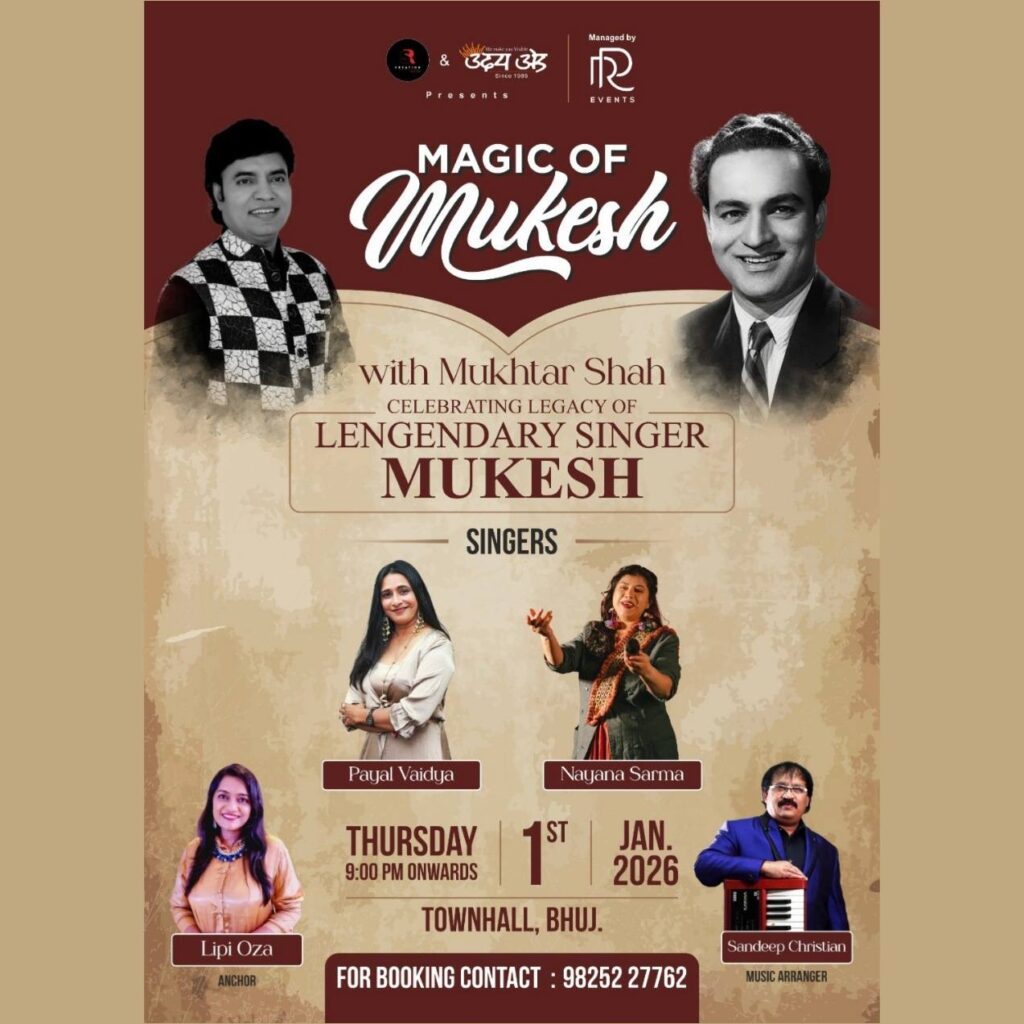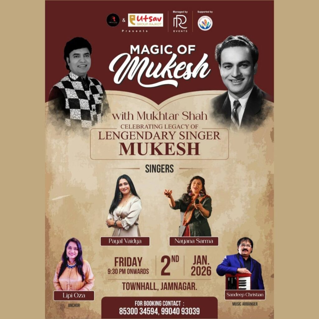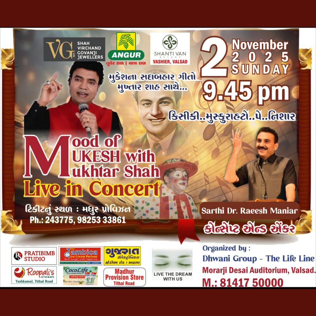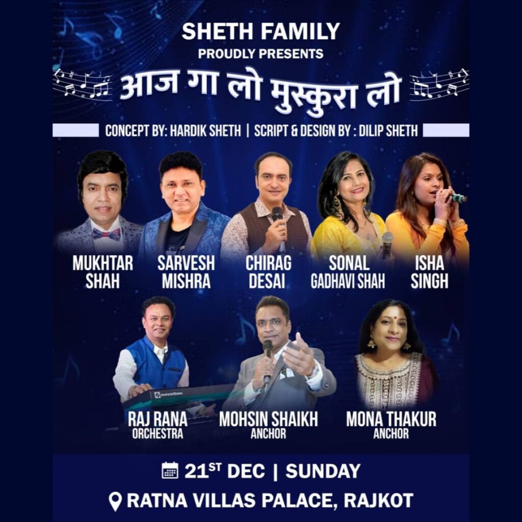 Mukhtar Shah’s voice was identified same as “Mukesh” from audience when he sung mukesh’s song “Main Pal Do Pal Ka Shayar Hoon” from Kabhi Kabhi. His voice from one hand is deeply sorrowful and on the other hand conveys strongly innocent and honeyed sweetness for which he received so many awards, appreciation and recognition certificates and trophies. He started his career performing publicly in 1984, as a singer at various shows with BABRA and PARTY. He has performed more than 5000 shows till now. He have sung around 17 Audio Albums and sung in Two Gujarati films till now.