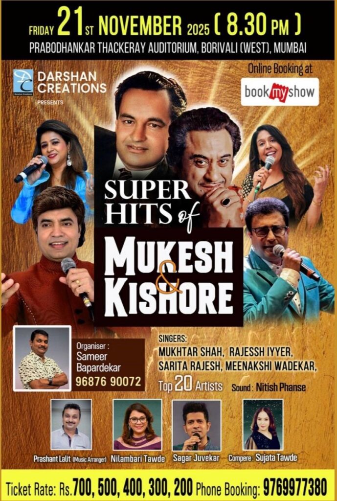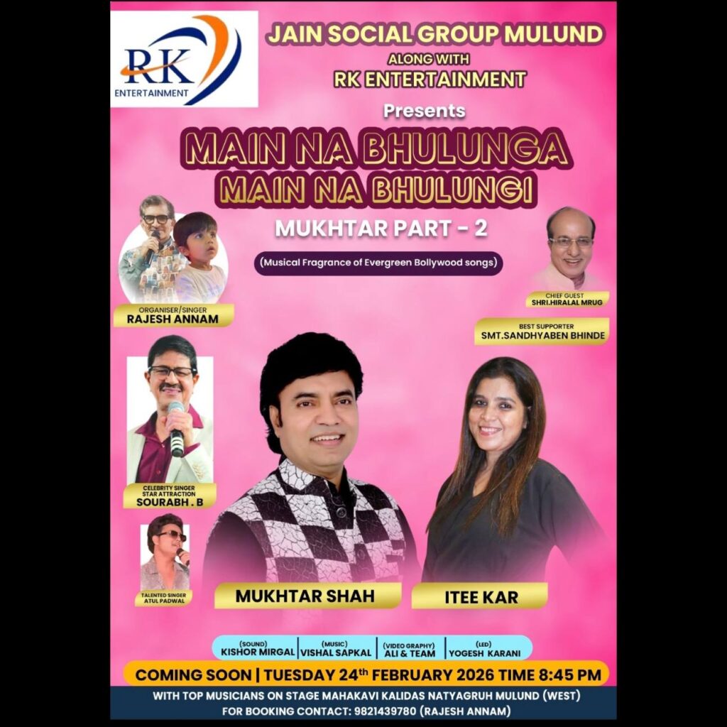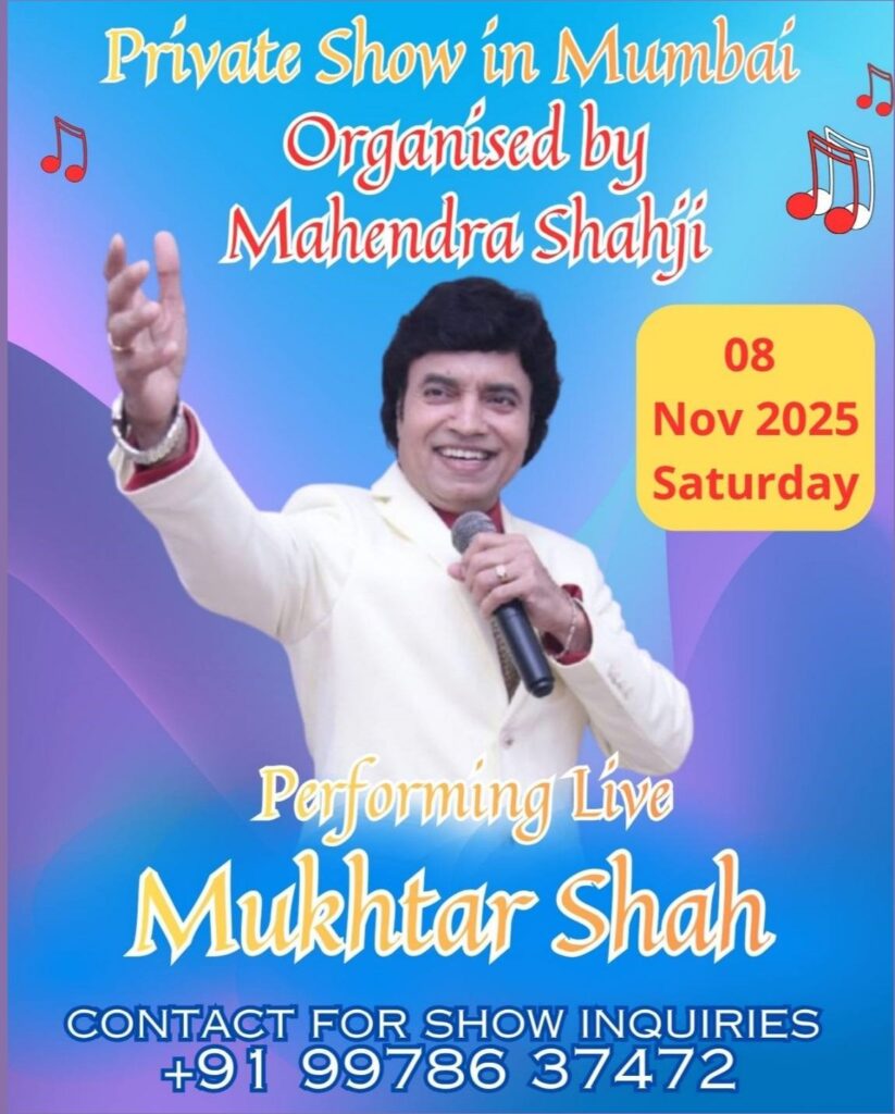 His first trip for singing out of the country was to Dubai-Sharjah-Abu Dhabi in 1987 and received the appreciation from the audience and became quite famous as a voice of Mukesh. Mukhtar Shah was announced as a “Stage King”. Thereafter he started regular foreign tours of Middle East Countries, Europe, Canada, East Africa and South Africa. Even he underwent for voice culture training at Sangitam Symphony by Professor Mr. Sudhir Khandekar.